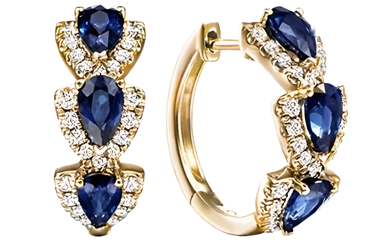 Take a risk and make a statement with our gorgeous Sapphire and Diamond Hoop Earrings! These elegant hoops come in multiple colors and feature stunning pear-cut sapphires and diamond accents for a luxurious touch. Upgrade your style and stand out from the crowd with these bold, daring earrings.